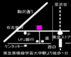 東急東横線 学芸大学駅 改札(1つのみ)を出て左、